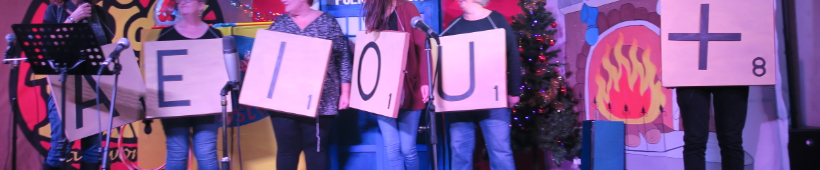 This drama revolves around six Scrabble pieces (vowels and letter ‘X’) which come to life in a child’s toy box at Christmas and then start talking about their importance. Letter ‘X’ is the odd one out (not a vowel) and is picked on by the vowels who are full of themselves but see little value in ‘X’. ‘X’ fights his corner and ultimately triumphs over the other letters when he turns his ‘X’ around making the symbol of a cross.