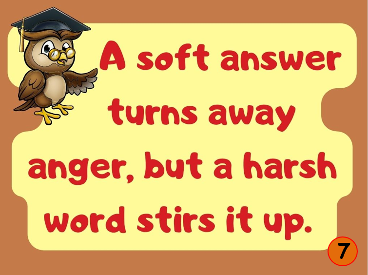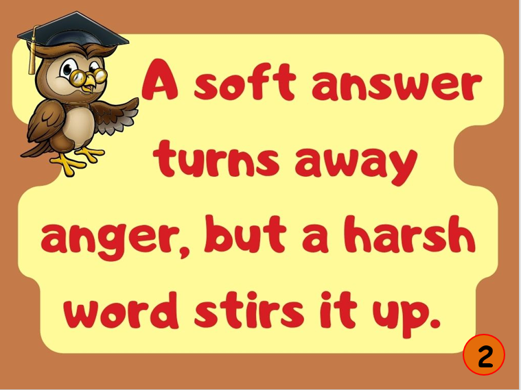 SLIDE 2 - Week 3 key phrase slide ‘A soft answer turns away anger, but a harsh word stirs it up’