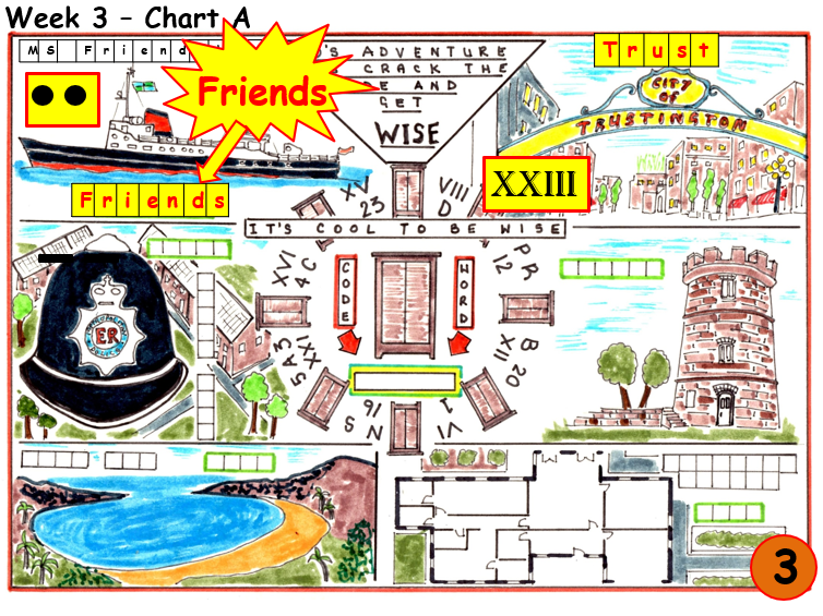 Last week we left Ed as he was taking off from a ship in the travelling wardrobe and our key word was ‘Friends’. Anyone remember what our wise saying about Friends was? Yes, ‘choose your friends wisely’. I wonder what this week’s adventure will be and what word Ed will find today.