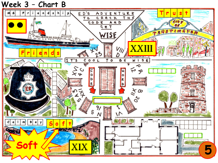 ( SLIDE 5 - Week 3 Chart ‘B’ with the word ‘Soft’ and Week 3 code piece hi-lighted can now be displayed.)