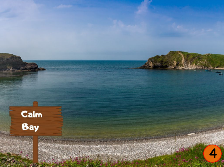 (SLIDE 4 - Background image for the beach and bay outside the cave)