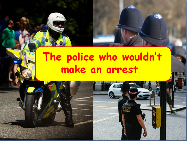 For this I’m going to pretend I’m one of those police. What I want you to tell me at the end, is exactly why me and my mates didn’t make the arrest we were supposed to. Here goes…