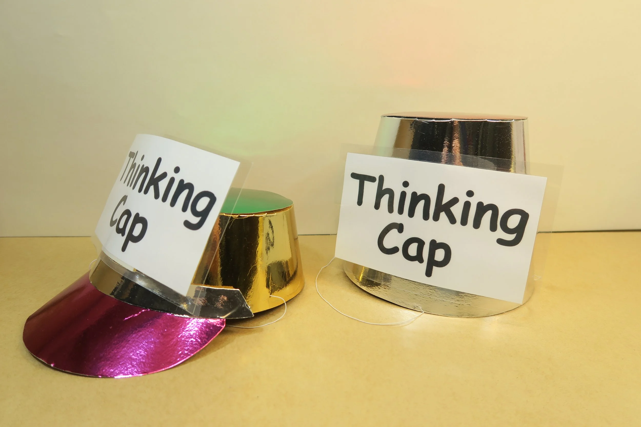 Thinking caps (A party hat or similar with the words ‘Thinking Cap’ marked on) them.